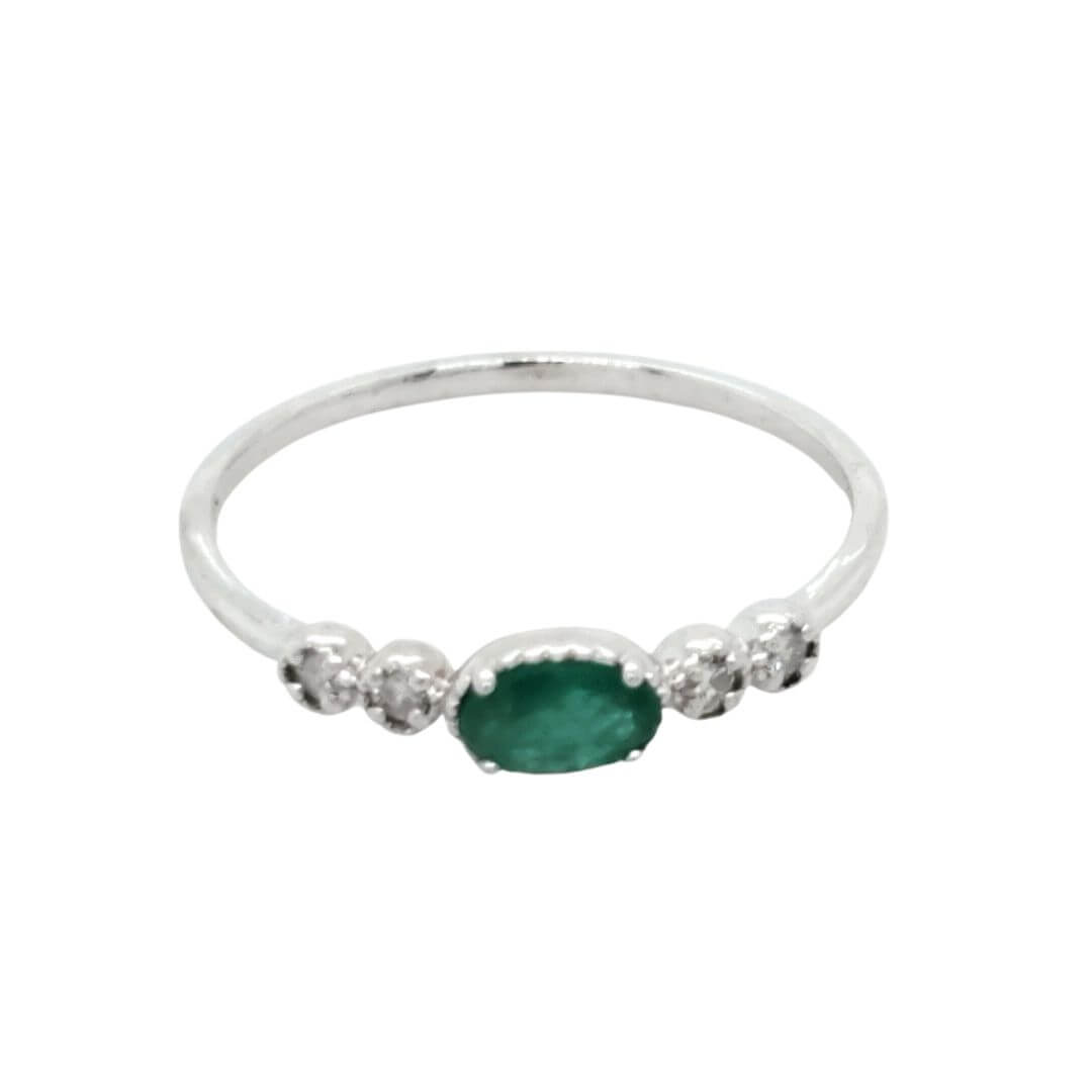 This modern emerald and diamond ring is the perfect gift for someone with a birthday in May. The milgrain design is an alluring detail, making it a piece that can be worn on its own or with other stackables.