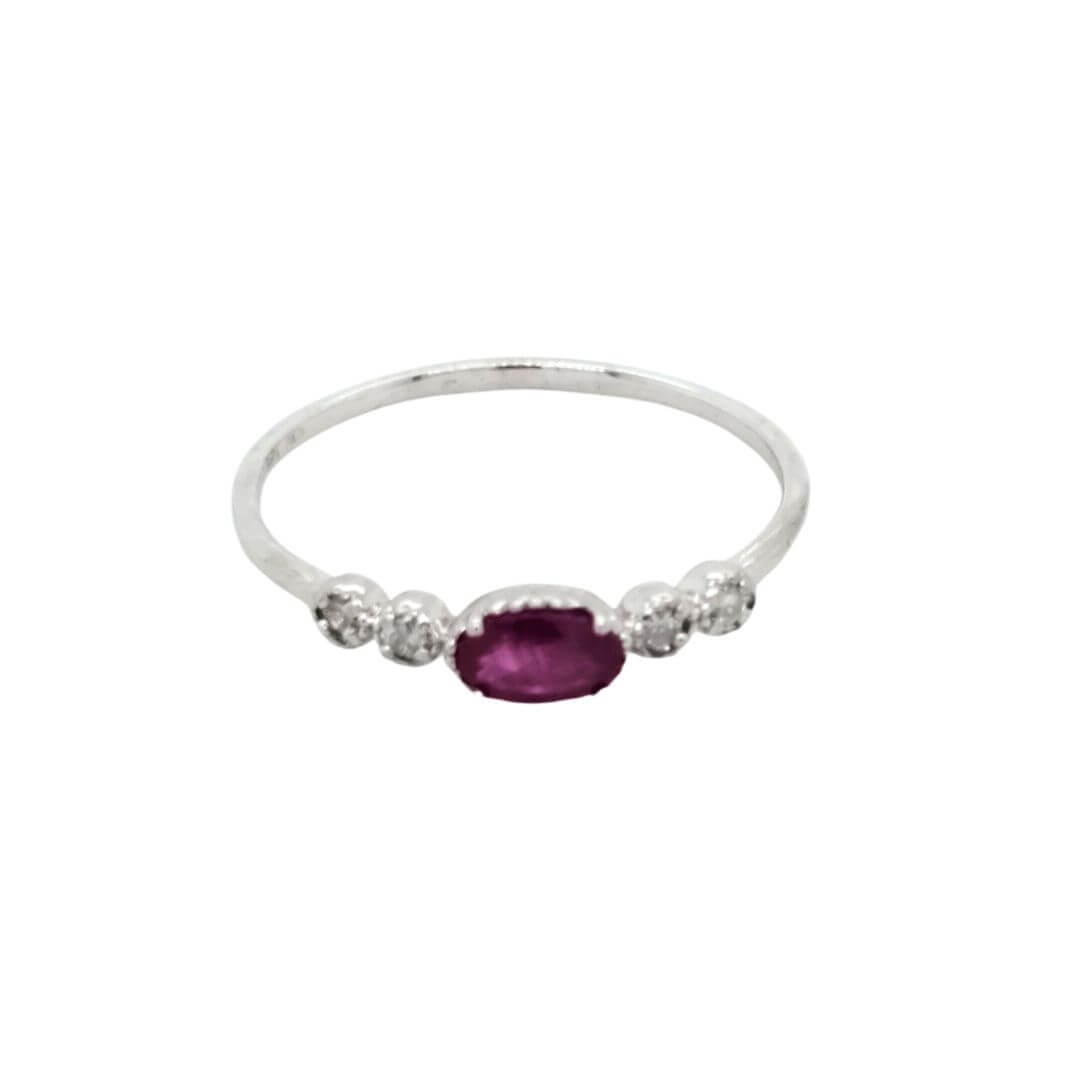 This modern ruby and diamond ring is the perfect gift for someone with a birthday in July. The milgrain design is an alluring detail, making it a piece that can be worn on its own or with other stackables.
