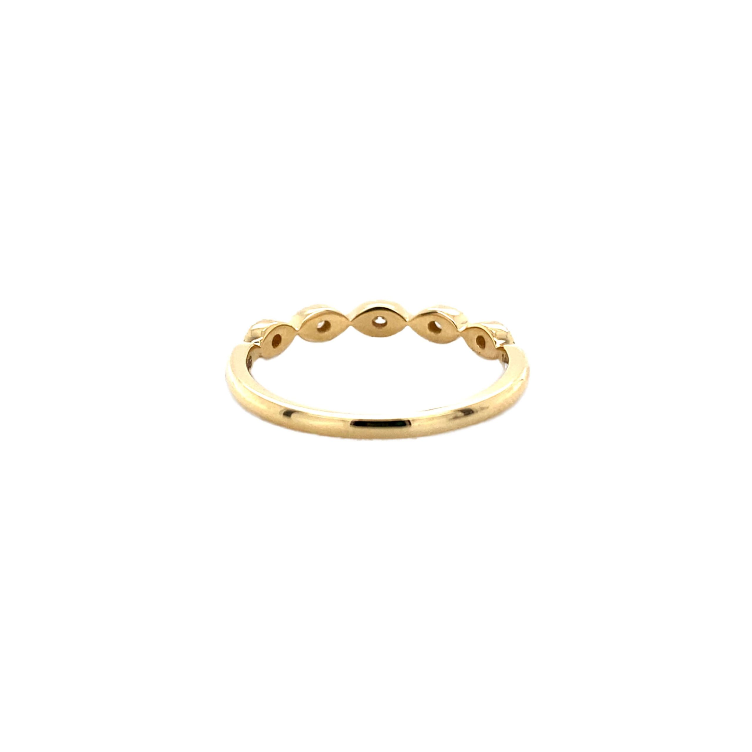 This modern and beautiful band highlights round brilliant diamonds with elegantly shaped gold. The milgrain design draws attention to its fine detail, and it can be worn on its own, as a wedding band, or with other stackables.