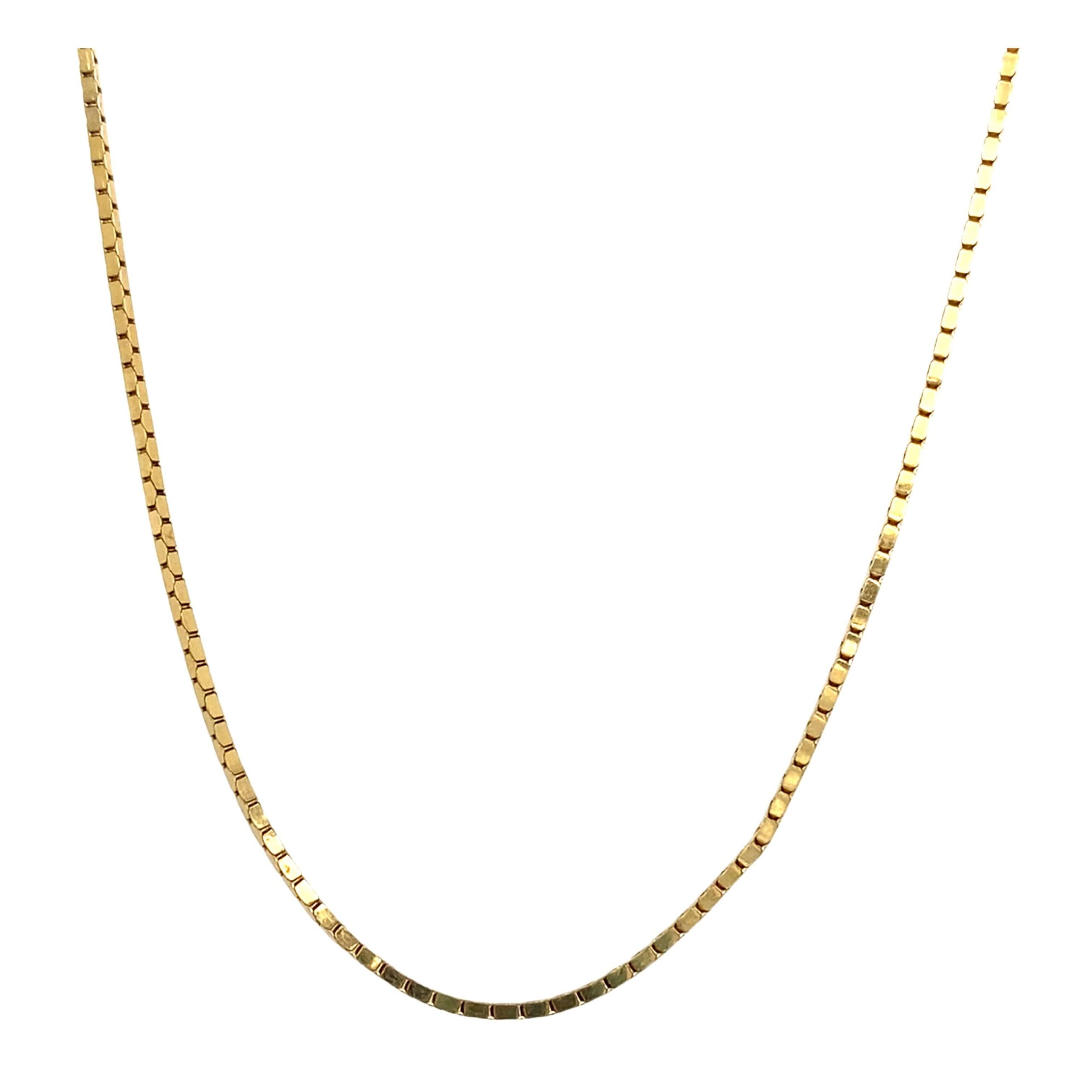 This stylish 14 karat yellow gold elongated box chain is a durable and timeless chain that is a staple for any jewelry-lover. Worn by itself or adorned with a pendant, this chain is perfect for all occasions.