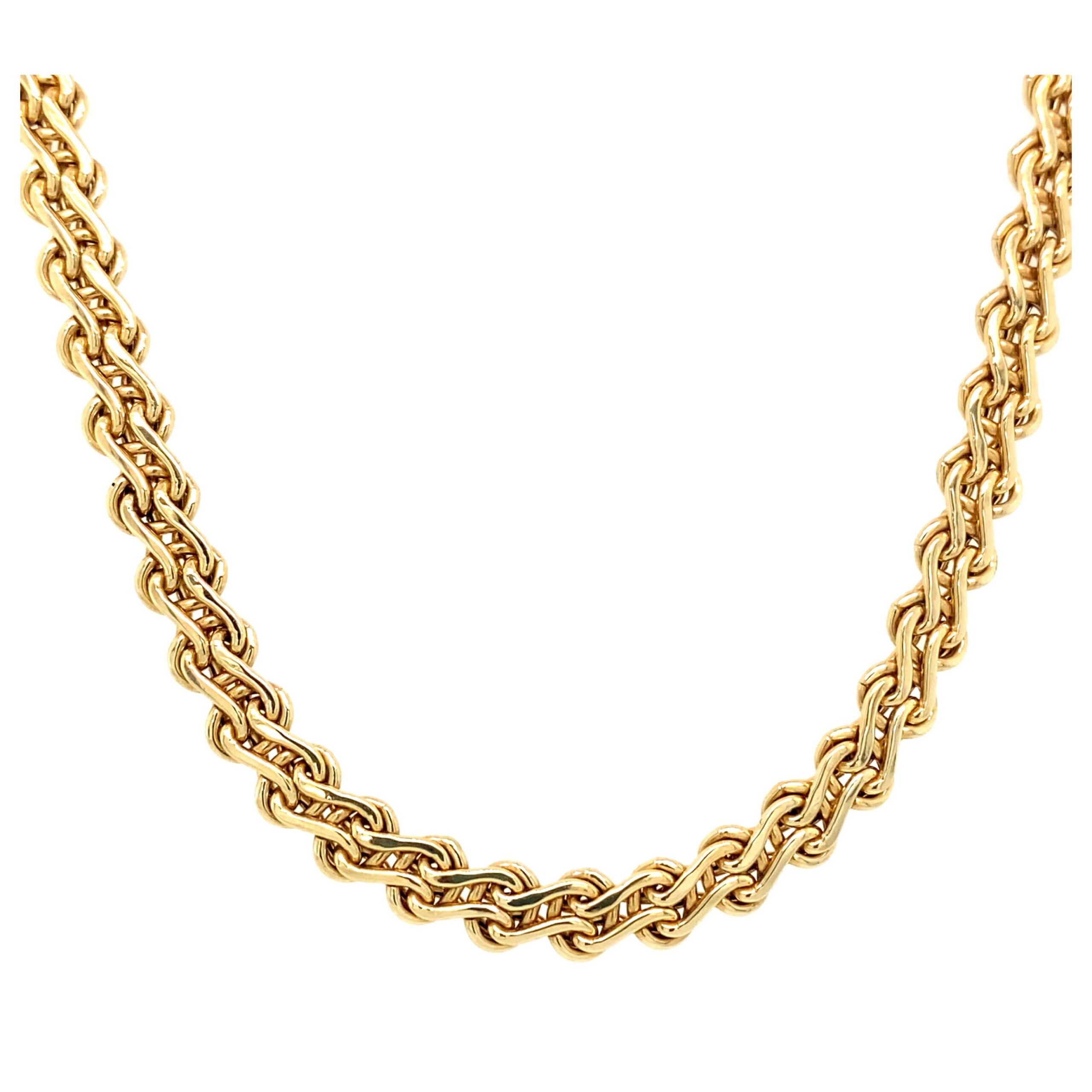 This elegant necklace drapes beautifully, showing off an intricate double-link design. Whether it’s layered with other pieces or hanging on its own, it’s sure to make a statement.