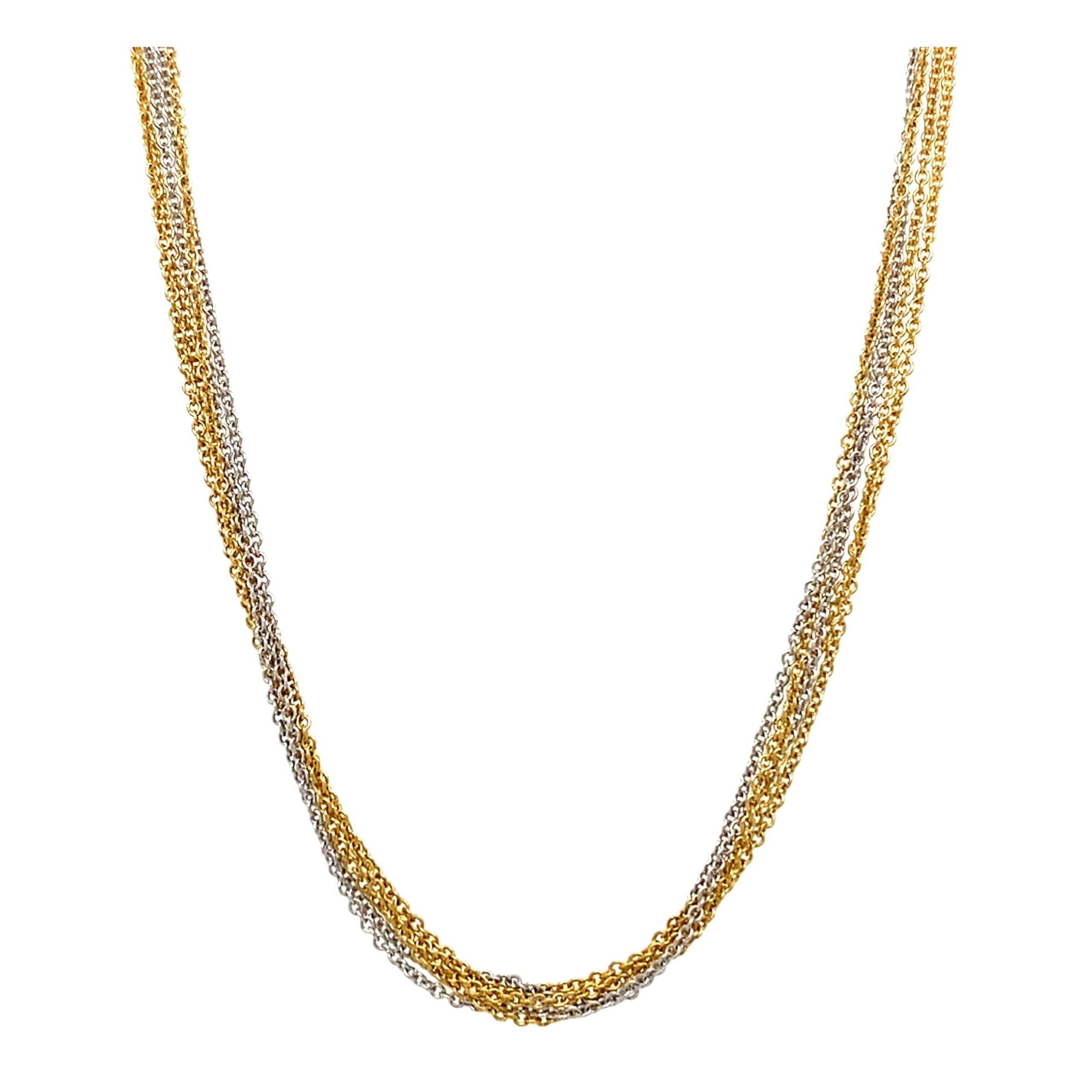 This multi-strand cable necklace combines white and yellow gold for a look that will match with anything. It can be worn on its own, with a pendant, or layered with other necklaces.