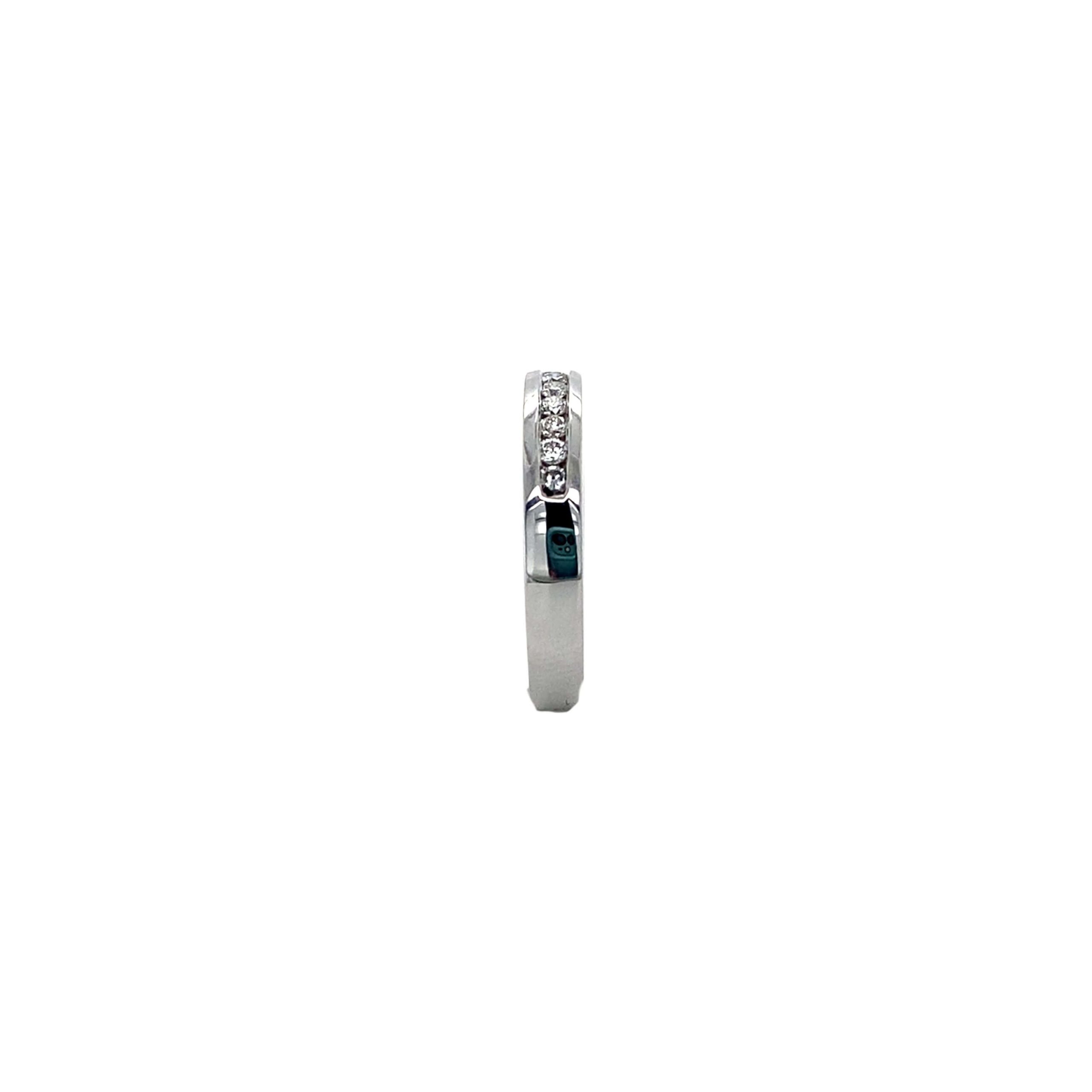 This classic channel-set diamond band is a comfortable and timeless piece that can be worn on its own, as a wedding band, or with other stackable bands.