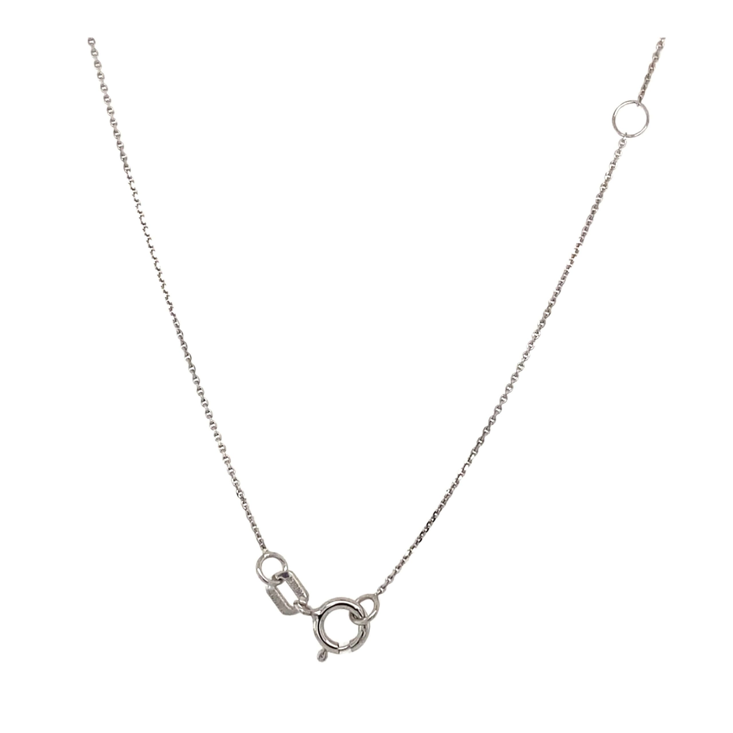 This stunning piece is a modern and artistic take on the classic bar necklace. Below the traditional line of round brilliant diamond, this necklace flashes three larger round brilliant diamonds for an eye-catching and beautiful look.