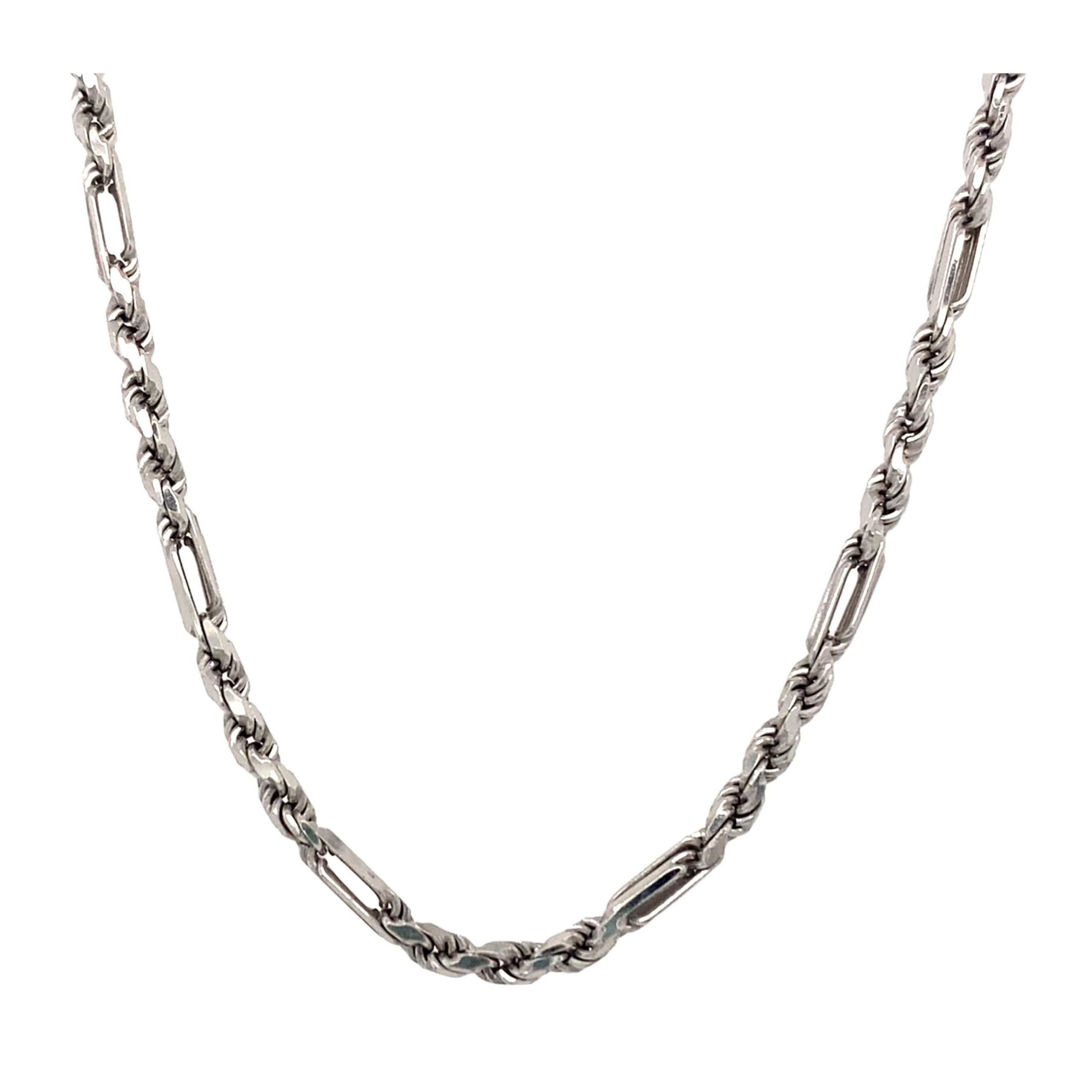 A modern combination of two classic styles, this chain seamlessly melds rope and figaro for a sharp and dressy look. It can be worn with a pendant, on its own, or layered with other pieces.
