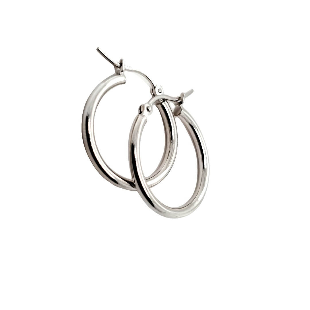 These white gold hoop earrings are the perfect combination of classic and trendy. They are polished to a high shine and are lightweight. They are the perfect everyday earrings.