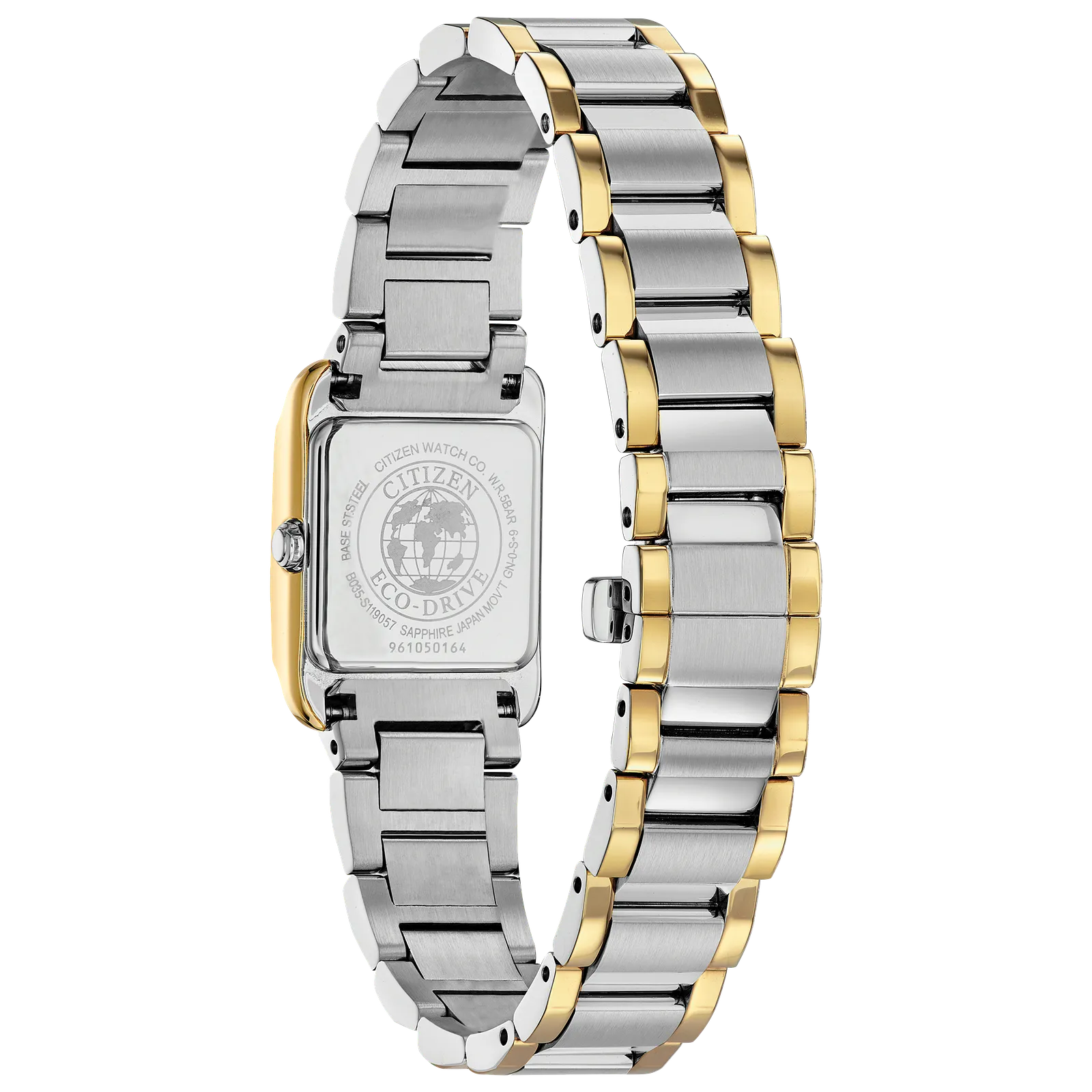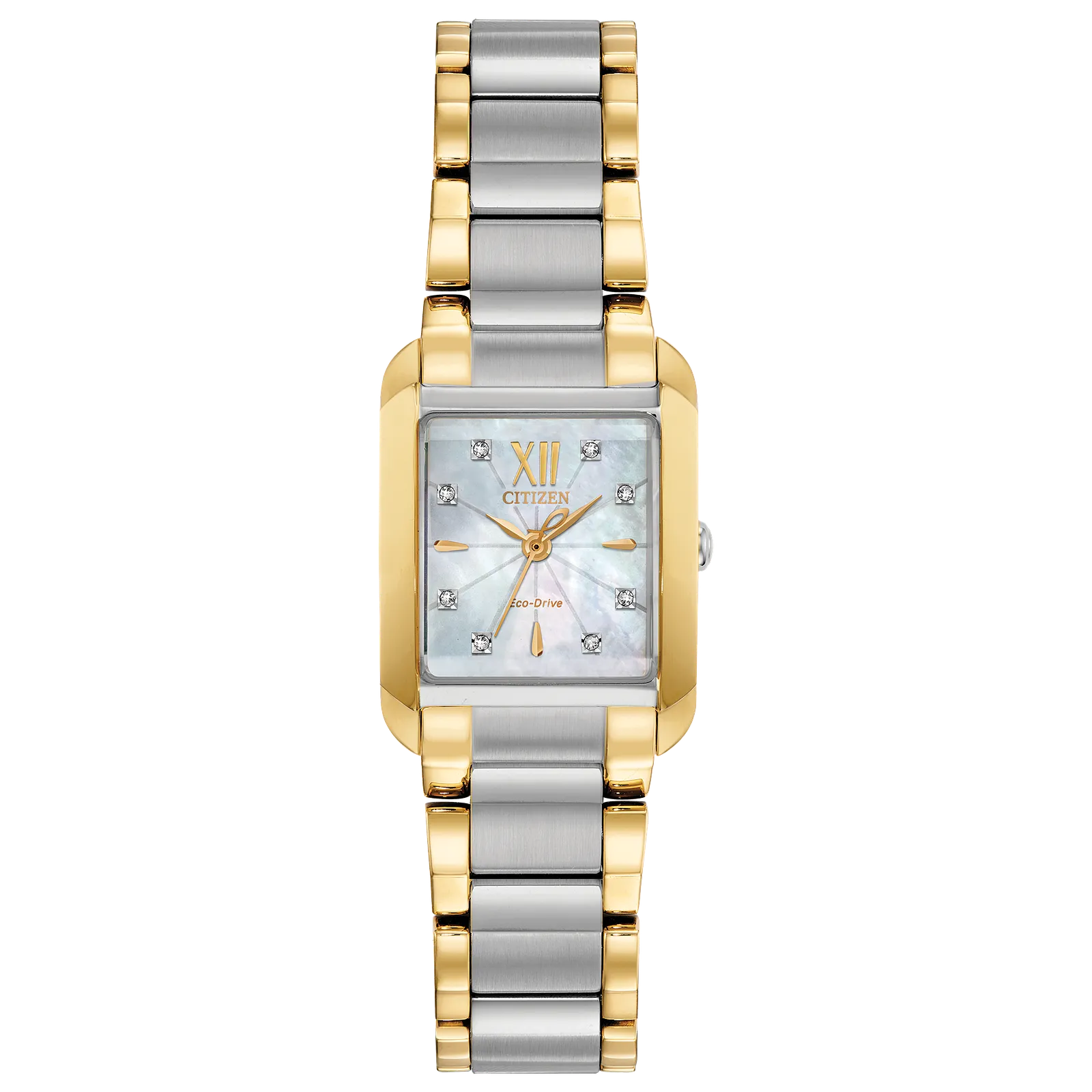 The CITIZEN L Collection represents the epitome of a ladies timepiece, showcasing all the sophistication, style and power that appeal to today’s woman. The simplicity of the Citizen L case is partnered with an elegant light white Mother-of-Pearl dial with beveled sapphire crystal. Featured here in two-tone stainless steel. Featuring our Eco-Drive technology – powered by light, any light. Never needs a battery. Caliber number B035.