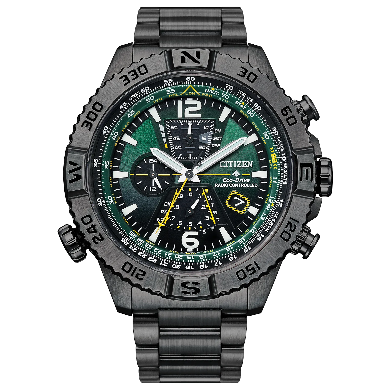 The newly re-launched Promaster Navihawk men’s watch from Citizen is inspired by the elements a pilot experiences while in flight. The grey stainless steel watch case and bracelet band have the look of stormy clouds, while the black dial is accented with bold green highlights. In addition to Eco-Drive technology — it is sustainably powered by light — the watch has a wide range of features, including a chronograph, atomic timekeeping, 12/24-hour time, and a power reserve indicator. This is the ultimate watch for anyone who isn’t content to keep their feet on the ground and always wants to see what’s over the next horizon.
