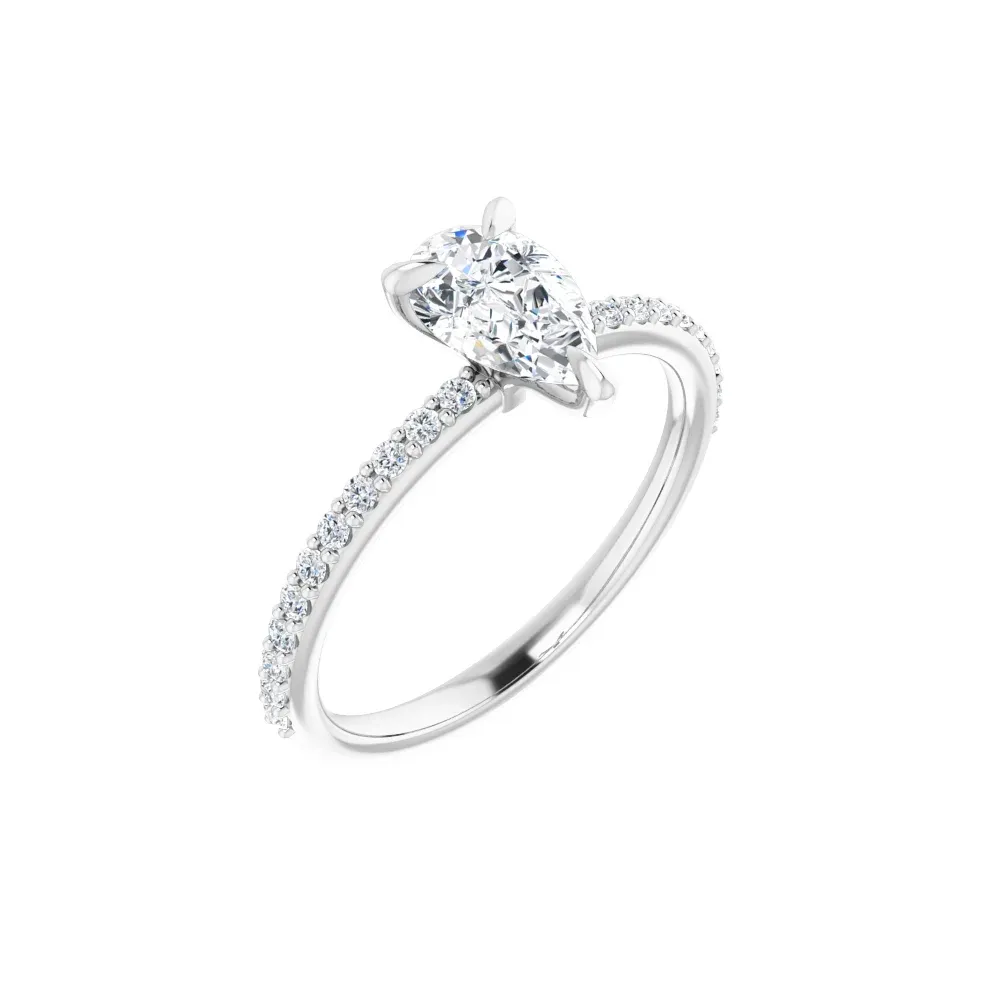 Classic and timeless, this sparkling ring shows off a single line of prong-set diamonds on either side of the center stone. Center stone sold separately. Pricing for customized pieces is variable depending on each person’s design. Please contact us at the store for more information.