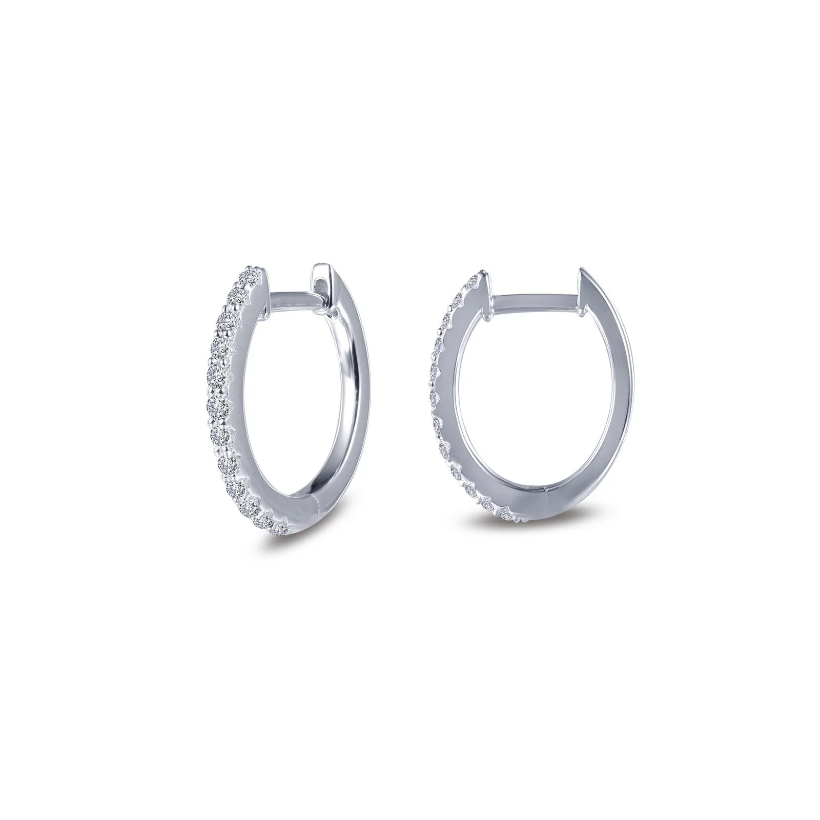 Cute and dainty. These Lafonn oval huggie hoops are set with Lafonn’s signature Lassaire simulated diamonds in sterling silver bonded with platinum. 10 mm x 11 mm oval.