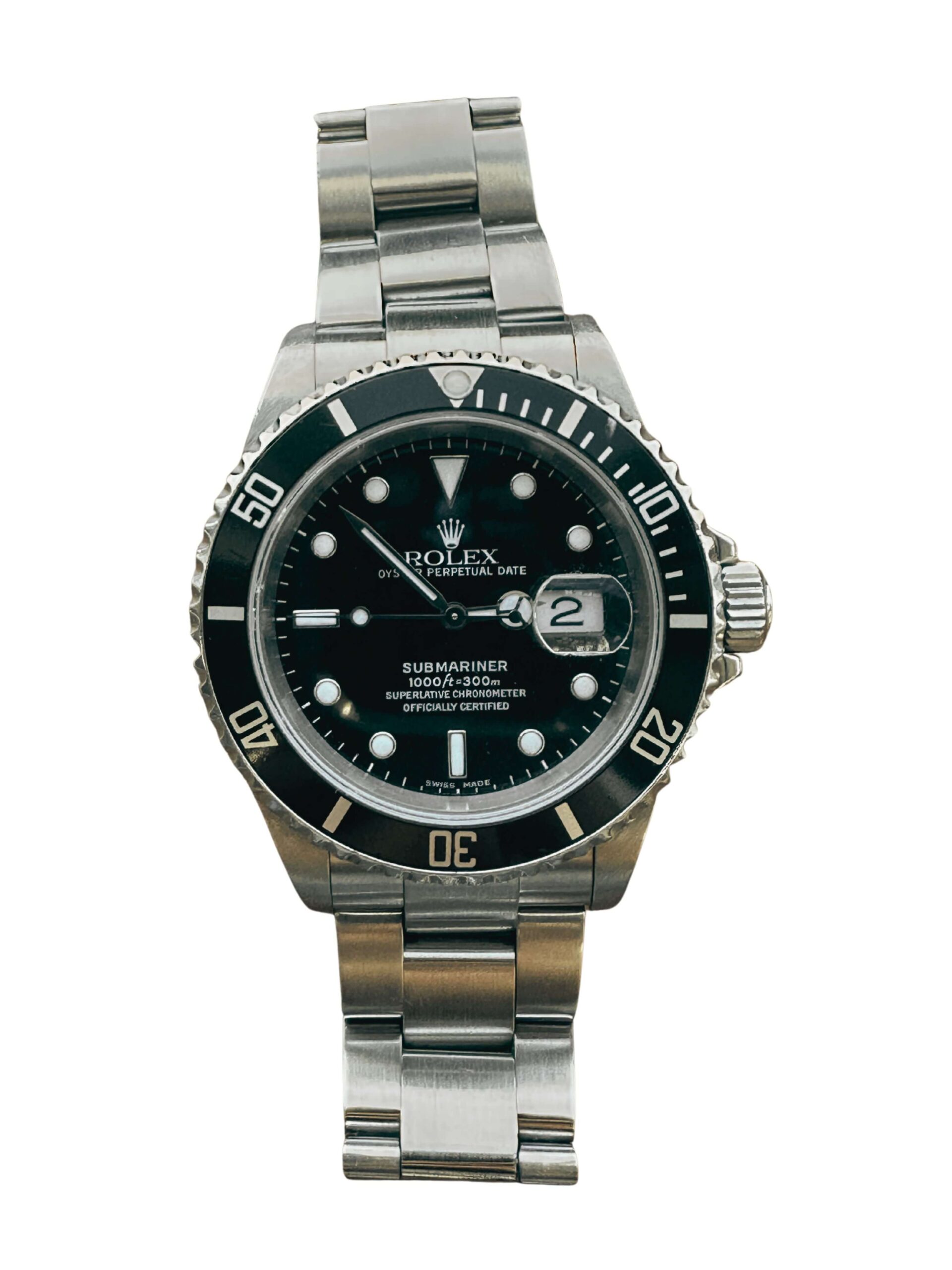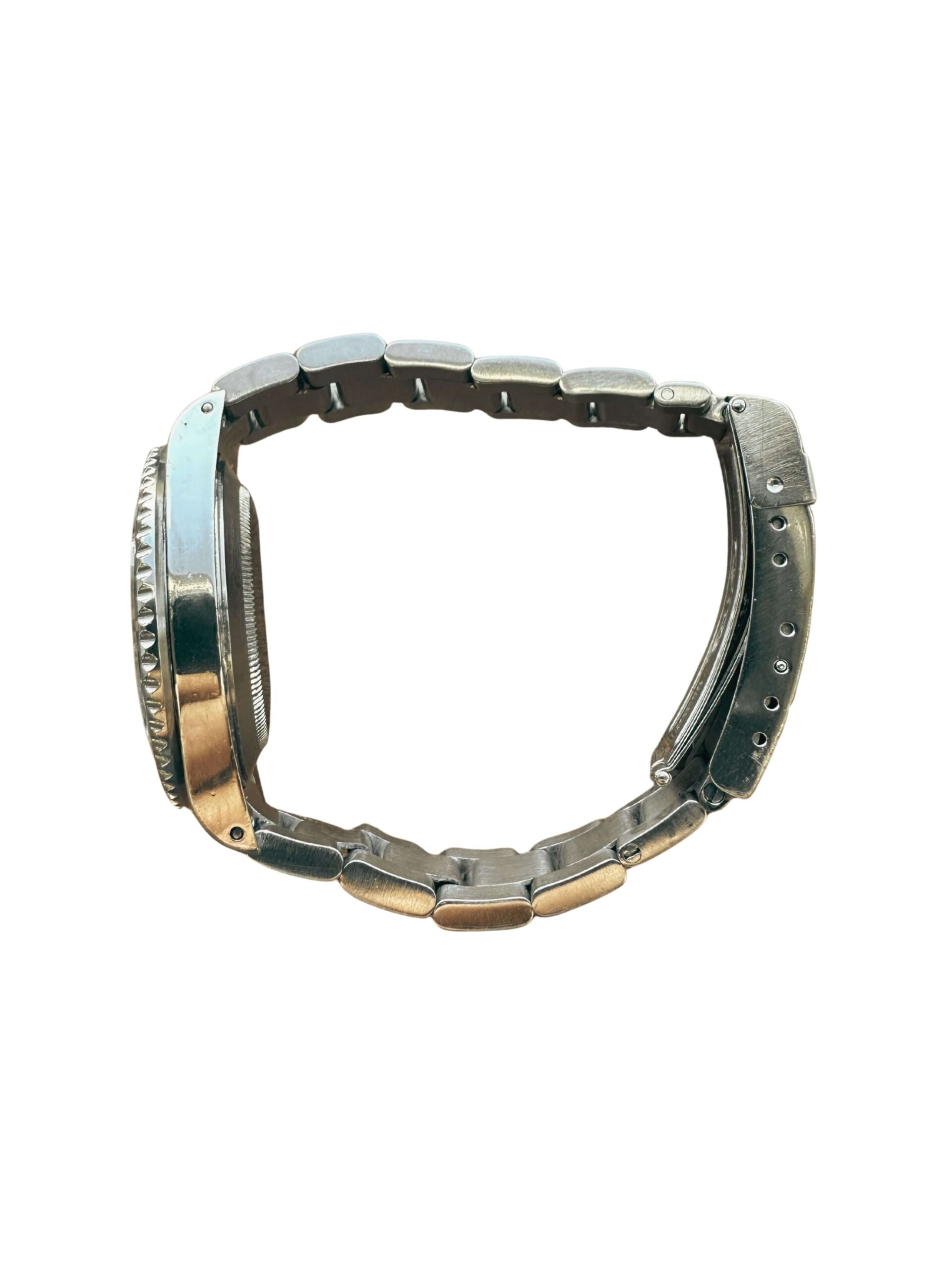 This pre-owned Rolex Submariner is a modern look that’s in high demand. With the black face and classic black bezel, this watch is an excellent addition to any collection. This watch does come with both box and papers. There are some scratches showing wear across both the case and the band. The band is looser, showing some signs of wear. Please see pictures for reference. The internal workings are fully functioning in this watch.